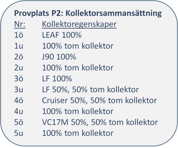 Tabell 3: Kollektorsammansättning vid Provplats P2: