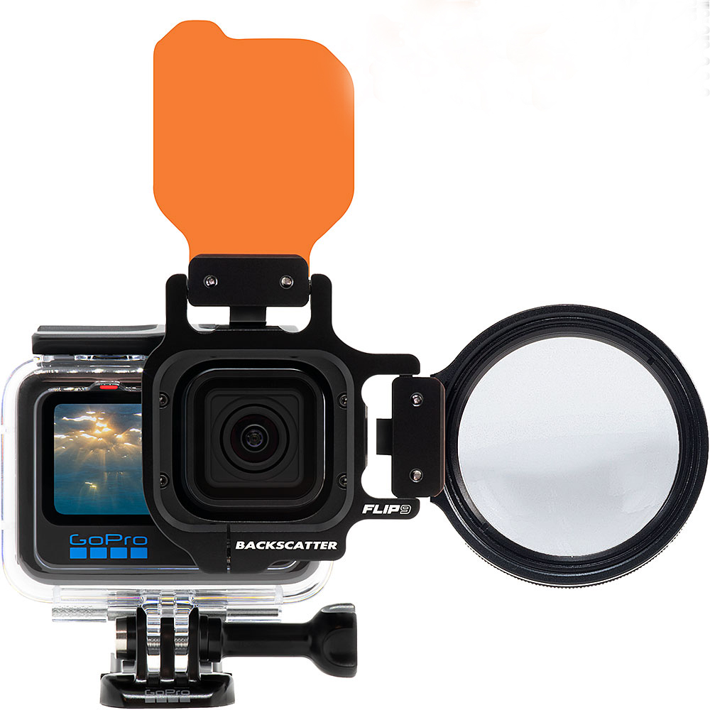 Action cameras, such as GoPro, can, like other waterproof cameras, be attached to a long bar to film or take timed photos below the water surface. With the help of the moving part of the camera mount, you can angle the camera so that you can photograph the underside of piers, boats etc. Close-ups photos require a "close up lens", as this type of camera has a fixed focus