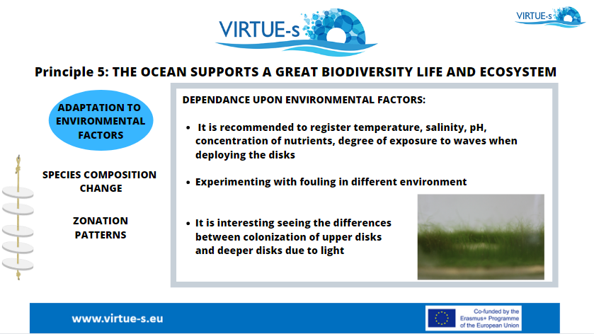 While analyzing organisms, students can familiarize themselves with the taxonomy of the most common marine biofouling species. On VIRTUE-s website (Links to an external site.) you can find many cards explaining biology and ecology facts of the most common species that colonize VIRTUE discs.